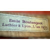 Émile Boulangeot (1877–1944) was a French violin maker who apprenticed with Émile Laurent in Mirecourt and later worked in Paris for Gustave Bernardel and Caressa & Français. Around 1912 he succeeded to the Paul Blanchard workshop in Lyon and became the official maker to the Lyons Conservatory. His known output includes about 175 violins, 7 violas, and 28 cellos, often prized for elegant workmanship and sweet tone.
