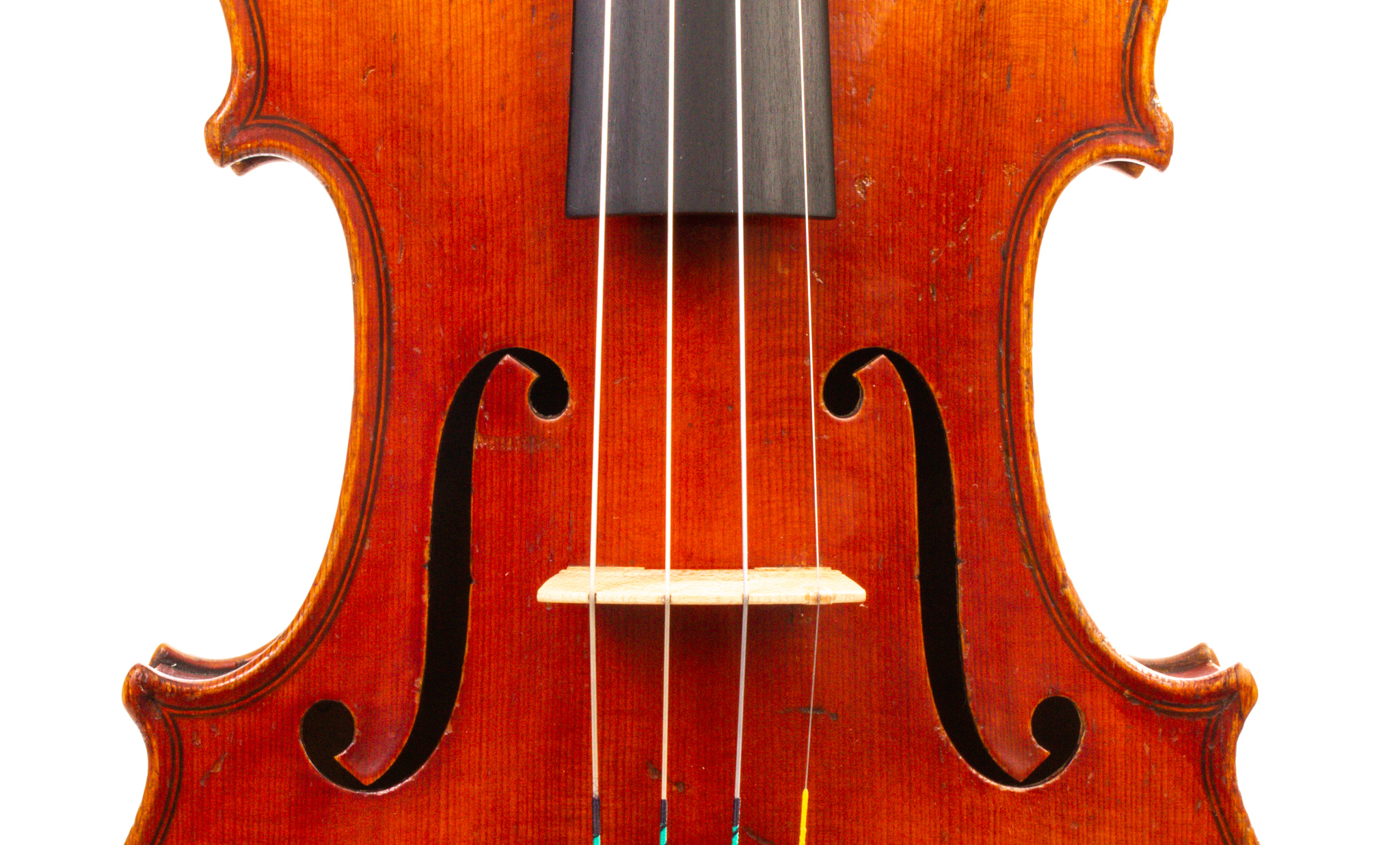 A violin from the Heberlein workshop circa 1905 built on a Stradivarius pattern. Markneukirchen quality is evident throughout the violin with it’s expertly carved scroll with near perfect proportions, the finely inlaid purfling ending in bee stings at the corners, and the delicate fluting on the f’s. Unfortunately the original label was removed and replaced by a D W Davenport whom little is known about.